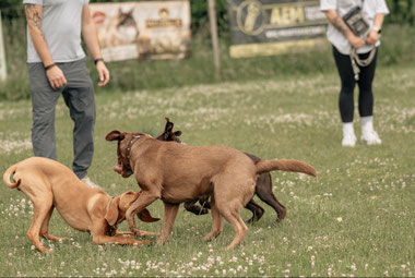 In unseren Welpenkursen lernen die Kleinsten in gemischten kleinen Gruppen von maximal 6 Hunden die Umwelt und die Grundkommandos des Hundeeinmaleins kennen.. Soziales Spielen unter verschieden Rassen und Größen ist ebenfalls sehr wichtig und kommt auch nicht zu kurz. Des Weiteren stärken wir durch gezielte Übungen die Bindung im Mensch-Hund-Team.